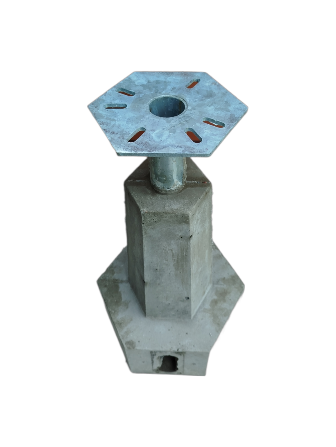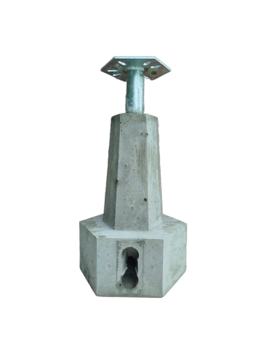 Śruby (max): M10; Blacha podstawy: 5mm; Trzon podstawy: rura 1,5 cala, ścianka 2,9mm; Zbrojenie: 170cm Ø 6mm; Peszel: 2 x 40mm (slot), 1 x 25mm (cały kanał); Części stalowe w całości ocynkowane ogniowo; Max wysokość instalowanego urządzenia: 2,20m