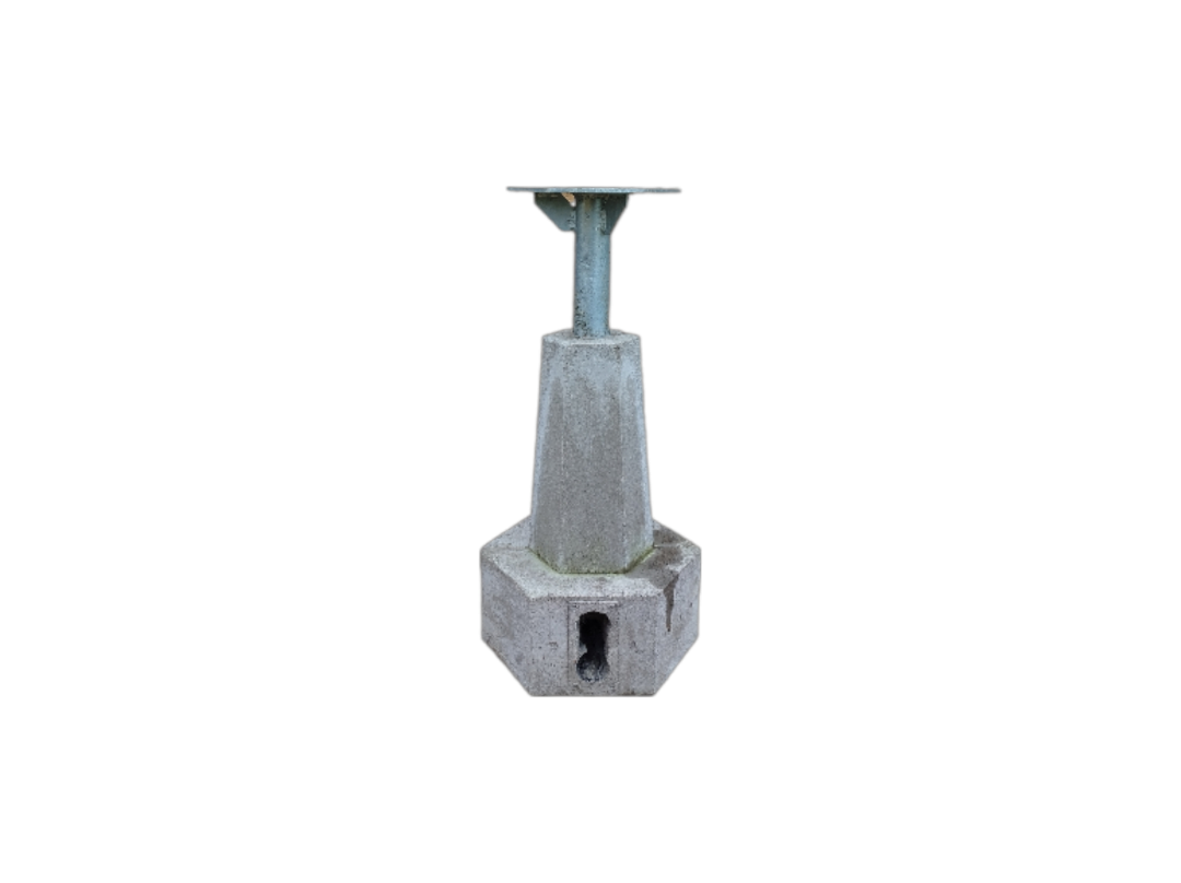 Podstawa stalowa na rurze 1,5 cala (ścianka 2,9 mm), wzmocniona 3 żebrami o grubości 5mm, fundament zbrojony, żelbetowy, zabezpieczony preparatem uszczelniającym.