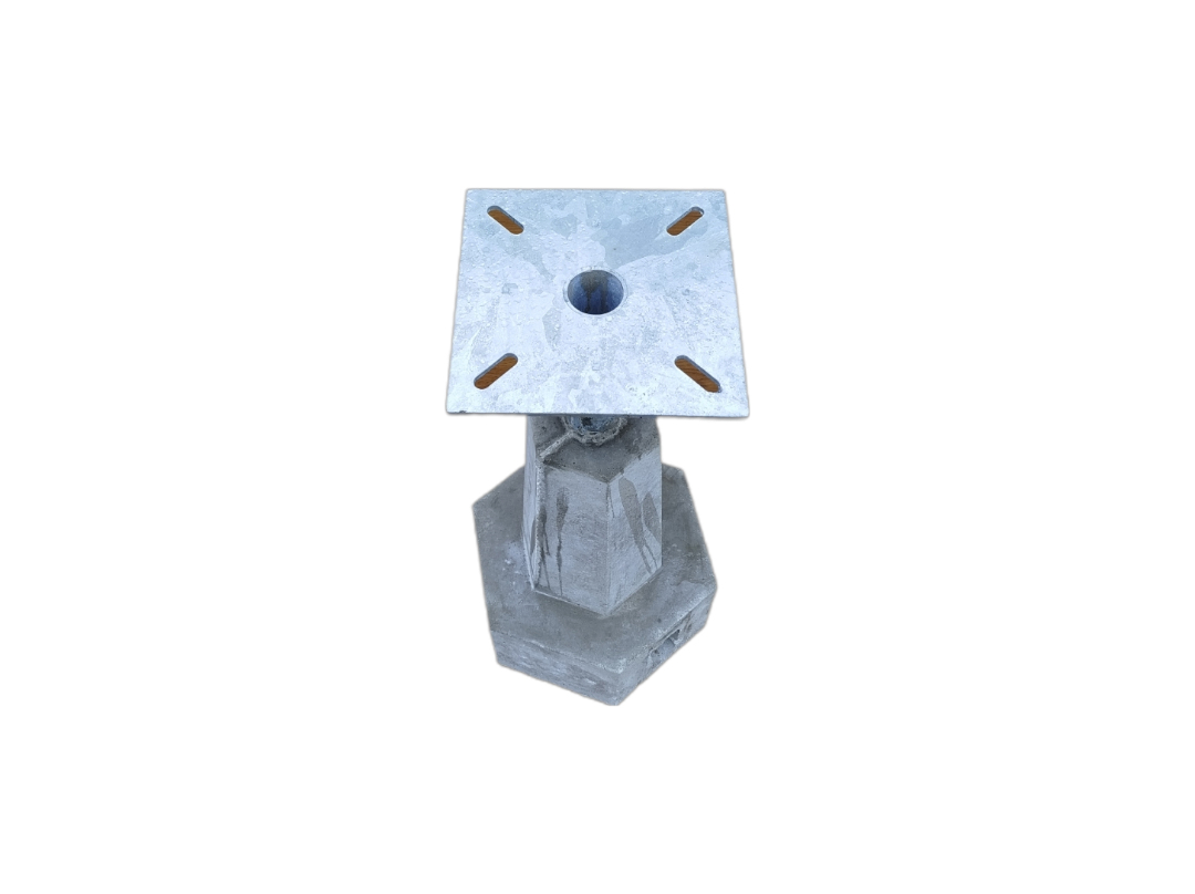Podstawa stalowa na rurze 1,5 cala (ścianka 2,9 mm), wzmocniona 4 żebrami o grubości 5mm, fundament zbrojony, żelbetowy, zabezpieczony preparatem uszczelniającym.