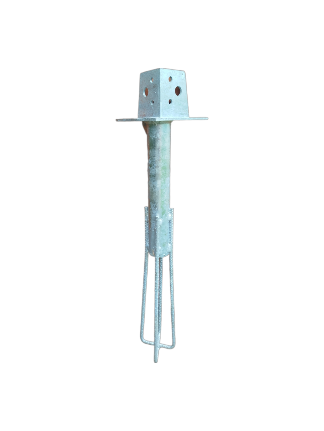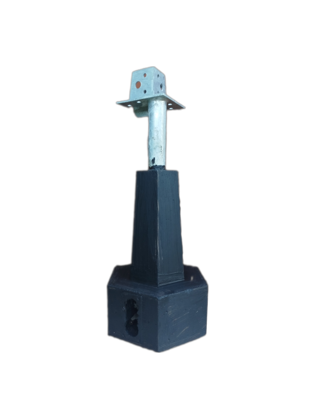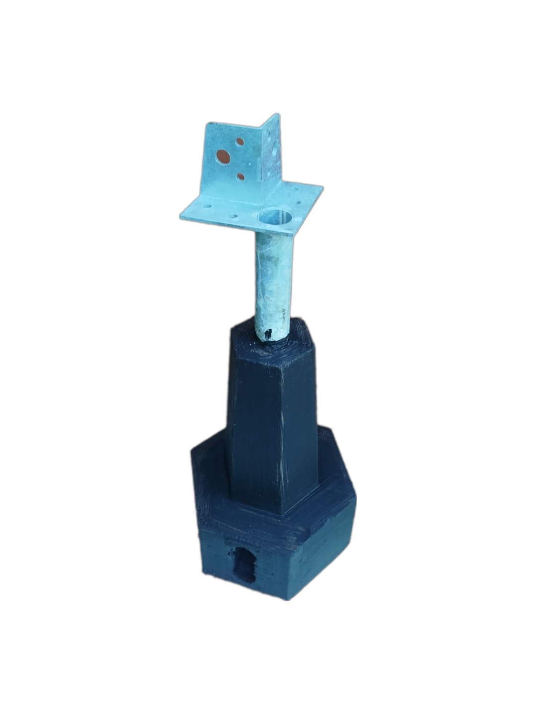 Podstawa stalowa na rurze 1,5 cala (ścianka 2,9 mm), wzmocniona pionowym wspornikiem o grubości 5mm. Fundament zbrojony, żelbetowy, zabezpieczony preparatem uszczelniającym.