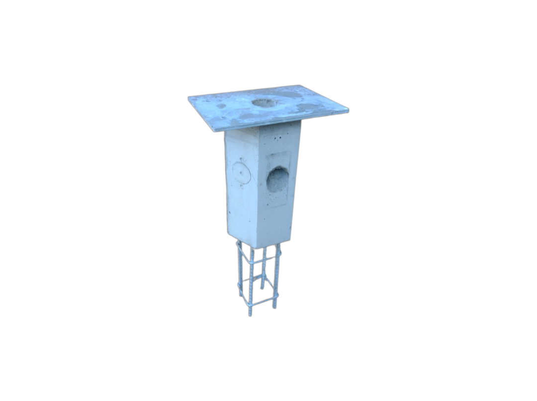 Konstrukcja żelbetowa z podstawą stalową i zbrojeniem stalowym do zanurzeń, zabezpieczony preparatem uszczelniającym.